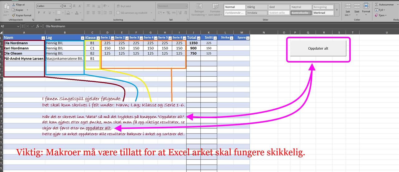 Xcel fil for utfylling av resultater finner du